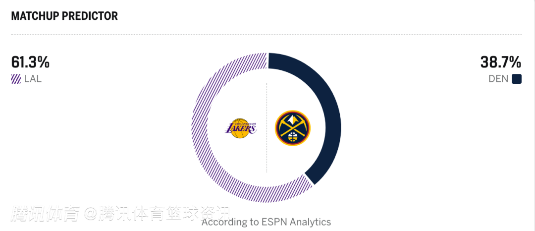 湖人61.3%,掘金38.7%