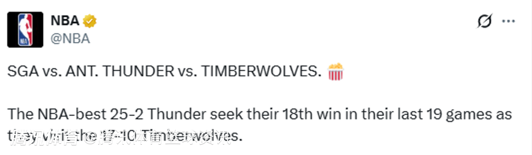 北京时间12月20日,今天上午10点30分,目前以25胜2负稳居联盟第一的雷霆,将客场挑战17胜10负的森林狼,他们力争在最近19场比赛中拿下第18场胜利。