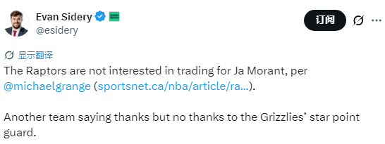 北京时间1月21日,据记者Michael Grange报道,猛龙无意交易得到灰熊球星莫兰特。
