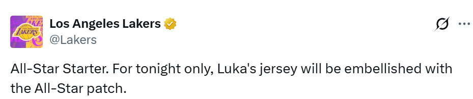 北京时间1月21日,NBA常规赛继续进行,湖人对阵掘金。赛前,据名记Dave McMenamin报道,东契奇将穿着有全明星标志的球衣出战,以此表彰他入选西部全明星首发阵容的荣誉。随后,湖人官方表示,这款球衣仅限今晚的比赛。