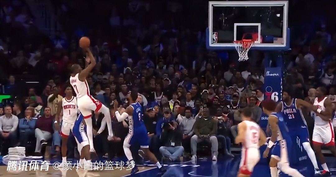 加时赛开场费城一波5-0,关键球还是杜兰特外线干拔三分球,申京篮下被乔治大帽,杜兰特边线推人被吹进攻犯规,杜兰特两个续命三分没中但火箭拼下前场篮板杜兰特两分命中,阿门继续失误比赛完结。