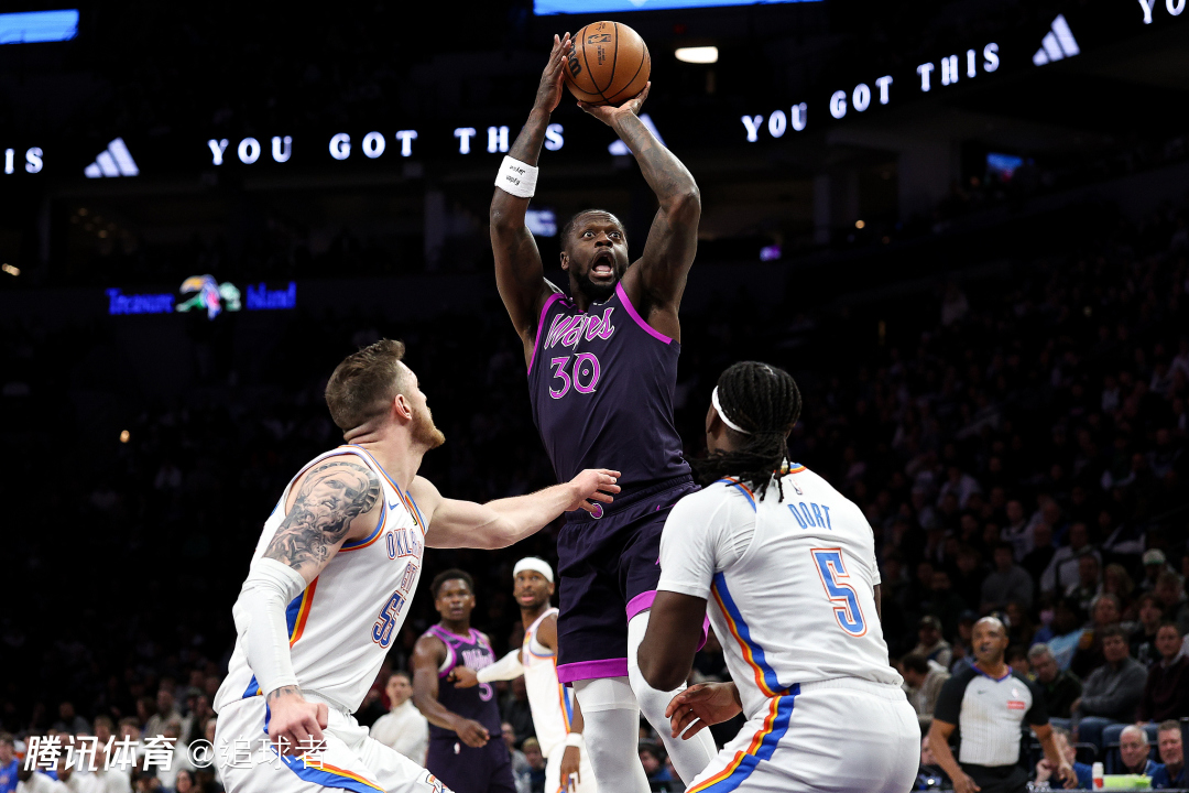 森林狼:爱德华兹26分12篮板3助攻3抢断2盖帽,迪文琴佐15分4篮板,麦克丹尼尔斯13分3篮板2助攻,兰德尔19分8篮板5助攻,戈贝尔9分15篮板1助攻,海兰德13分3篮板3助攻2抢断1盖帽,里德15分6篮板2助攻