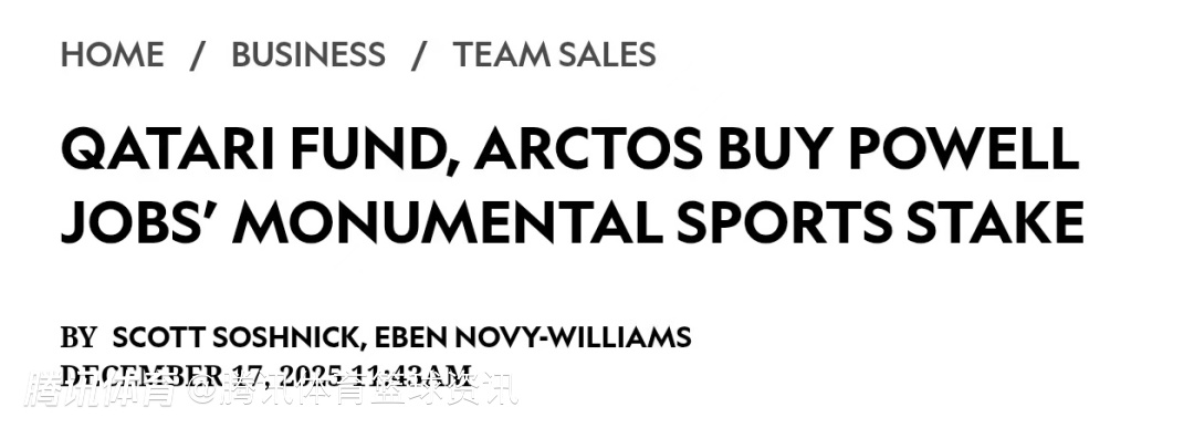 北京时间12月18日,据美媒Sportico报道,苹果创始人史蒂夫-乔布斯的遗孀劳伦-鲍威尔-乔布斯,拟出售其在Monumental体育娱乐公司的股份,受让方为私募股权公司Arctos Partners和卡塔尔投资局(QIA)。