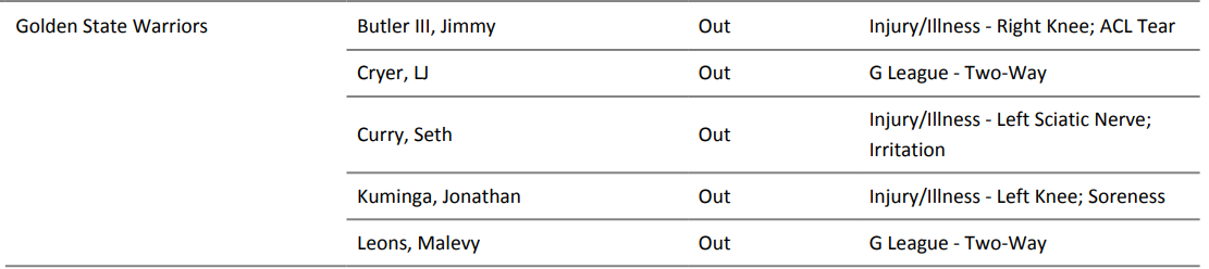 勇士具体伤情报告如下: