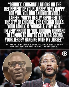 乔丹在视频中说道:“罗斯,恭喜你迎来球衣退役的荣耀时刻,真为你感到高兴。你的职业生涯堪称传奇,你为芝加哥这座城市、芝加哥公牛队,也为你的家人和自己,都交出了一份完美的答卷,诠释得淋漓尽致。我为你深感骄傲,期待早日来到联合中心,见证你的球衣与我的并肩高悬。”