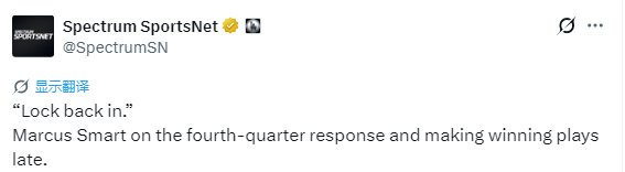 斯马特:就是咬牙顶住、重拾专注罢了。对手第三节攻势很猛,我们丢了很多轻松得分的机会,防守端也被他们冲乱了节奏。当时大家都挺懊恼的,因为这种球根本不该丢。对手趁机打出一波攻势,但我们没慌,全队拧成一股绳,及时调整状态,最终拿下了胜利。