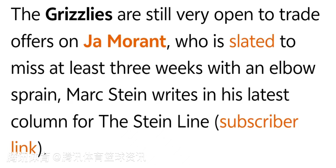不过,那些想抄底这位频繁受伤的明星控卫的球队,可能需要重新评估。Stein透露,灰熊内部正面临压力,要求交易回报优于老鹰交易特雷-杨时得到的那些“友好型合同”。