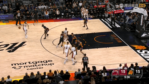 首节还剩4分57秒时,鲍威尔两罚全中,紧接着在还剩4分27秒时,雅库奇奥尼斯多次抢到前场篮板后补篮命中,热火从13:15追到并打出攻势,将比分从13:15拉开到21:15。首节结束,热火32:21领先太阳。
