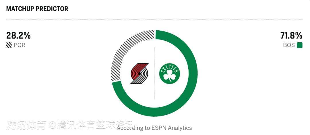 凯尔特人71.8%,开拓者28.2%