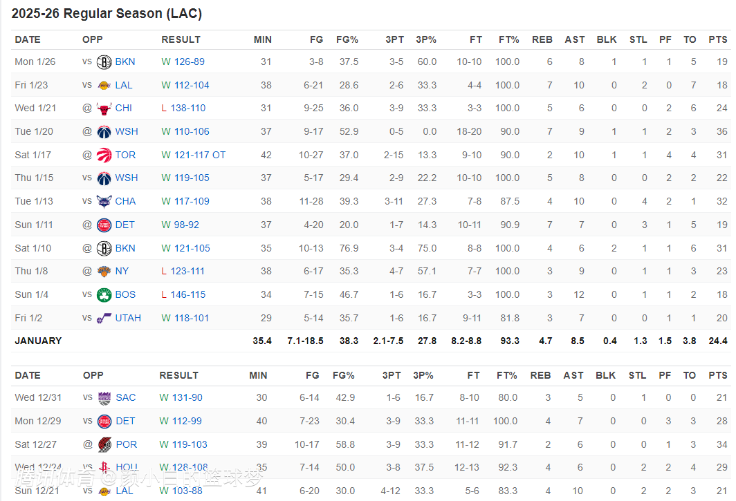 快船狂胜篮网后最近的18场比赛赢下了其中15场,这场胜利后快船21胜24负,快船距离50%的胜率只差3场,哈登仅打了三节就打卡下班拿到19+8+6+1+1的全面数据,但问题还是效率不佳,命中率仅37.5%,正负值+22。
