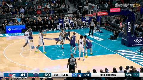 第二节还剩11分8秒至40秒期间,黄蜂把比分从24比30打到38比69,在这10分28秒里将领先优势从6分一下扩大到31分,其间迪亚巴特的空切扣篮、布里奇斯的打板勾手和鲍尔的补篮不断打穿76人防线,比赛早早失去悬念。