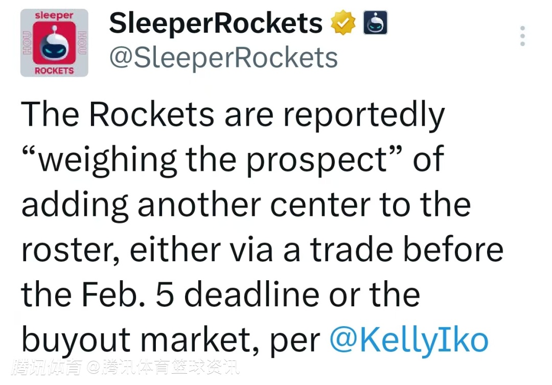 北京时1月27日,名记Kelly Iko接受球迷提问,回应亚当斯大概率长期缺阵后,火箭是否会交易引进中锋的话题。