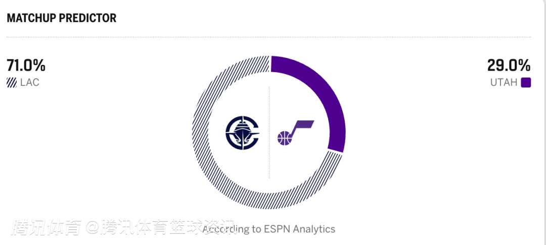 快船71%,爵士29%