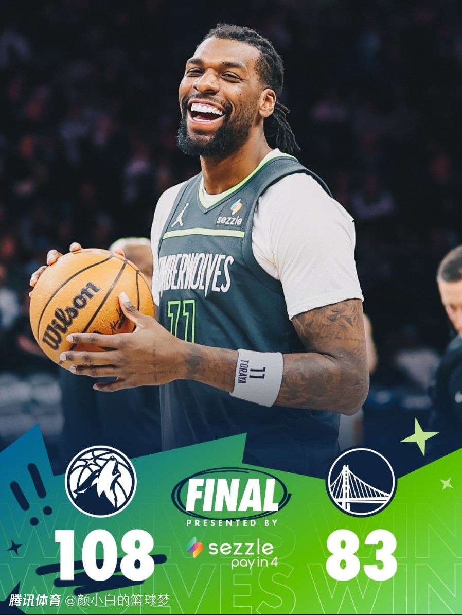 这场比赛森林狼也轮休了爱德华兹,但球队依旧大胜勇士,此役后森林狼结束了漫长的5连败,他们拿到本赛季第28场胜利重返西部第六。