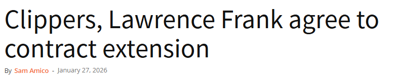 北京时间1月28日,据The Athletic报道,快船队决心对篮球运营总裁劳伦斯-弗兰克予以重用,双方已达成一份多年续约合同。联盟消息人士透露,这份新合同期限为四年,预计快船管理层其他人员的续约事宜也将陆续跟进。