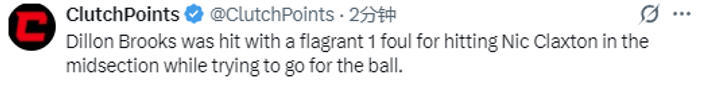 裁判观看录像回放后,吹罚了狄龙-布鲁克斯一级恶意犯规。