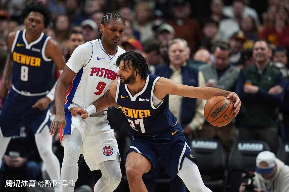 进入第四节比赛,活塞前2分钟扩大88-77领先,掘金一波6-0攻势追分,活塞一波7-0攻势扩大95-83领先优势。掘金连续冲击内线一波7-0攻势追到差5分,格林补篮得分,穆雷抛射回敬,坎宁安抛射得分。穆雷2+1与中投再得5分追到仅差2分,坎宁安中投回敬穆雷抛射不中,哈里斯上篮扩大6分优势打停掘金。穆雷中投得分,穆雷还助攻小哈达威三分命中追到差1分,邓罗暴扣,瓦兰上篮回敬。哈里斯关键中投得分,穆雷造三分犯规关键三罚两中,哈里斯被犯规两罚全中维持3分优势。穆雷再次造三分犯规三罚一中,最终活塞战胜掘金。