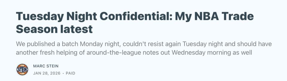 北京时间1月28日,名记Marc Stein在个人播客节目中聊到了交易市场的最新动态传闻,其中热火有信心成为字母哥的下家,湖人有望在截止日前送走克内克特等多则消息。