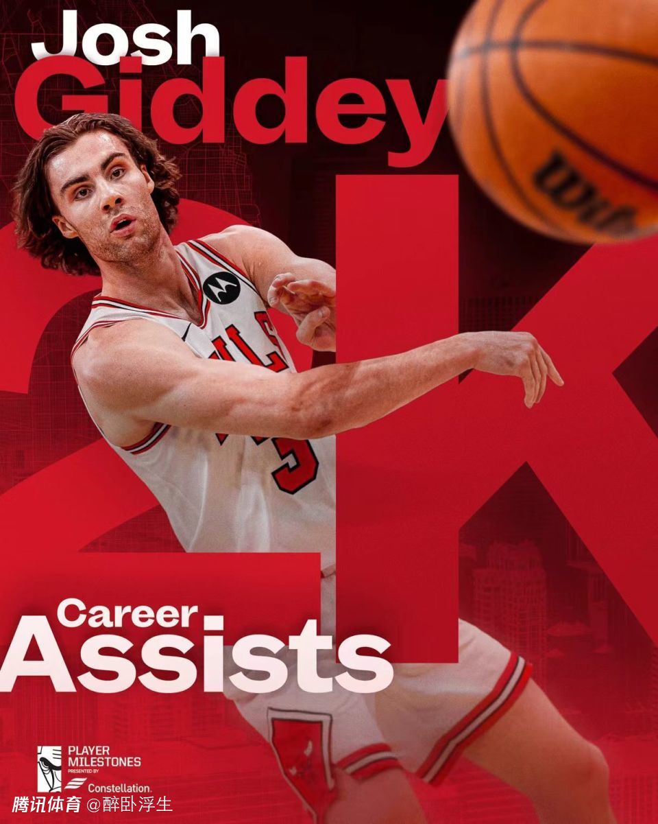 吉迪达成生涯2000次助攻里程碑,成为NBA历史第14位在23岁或更年轻达到2000次助攻的球员。