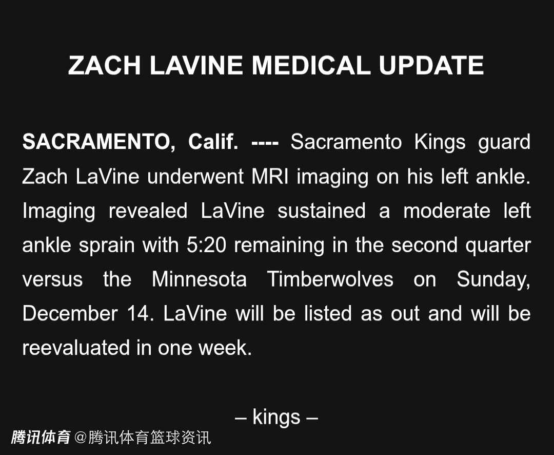 北京时间12月18日,国王官方更新球队伤情报告,后卫拉文左踝已完成核磁共振检查。结果显示,在此前对阵对阵森林狼的比赛次节还剩5分20秒时,拉文遭遇左踝中度扭伤。拉文将被列入缺阵名单,一周后复查。