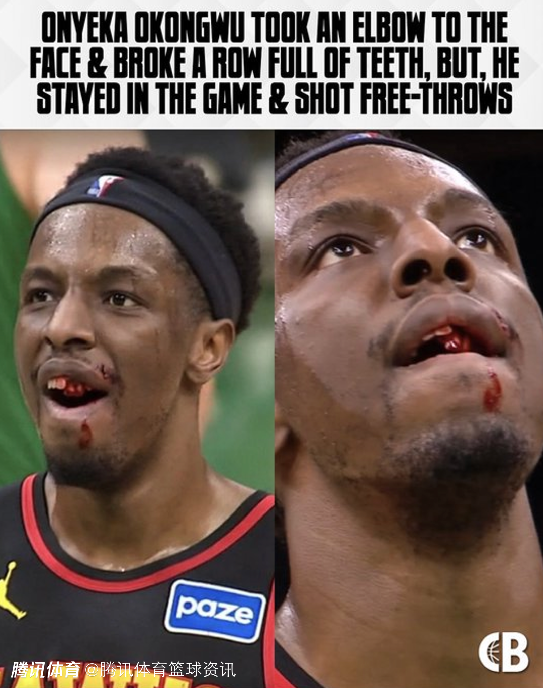 北京时间1月29日,NBA常规赛,老鹰以117-105击败凯尔特人,比赛末节,杰伦-布朗肘击到了奥孔古,后者满嘴是血,回到更衣室后又跑回来罚球。