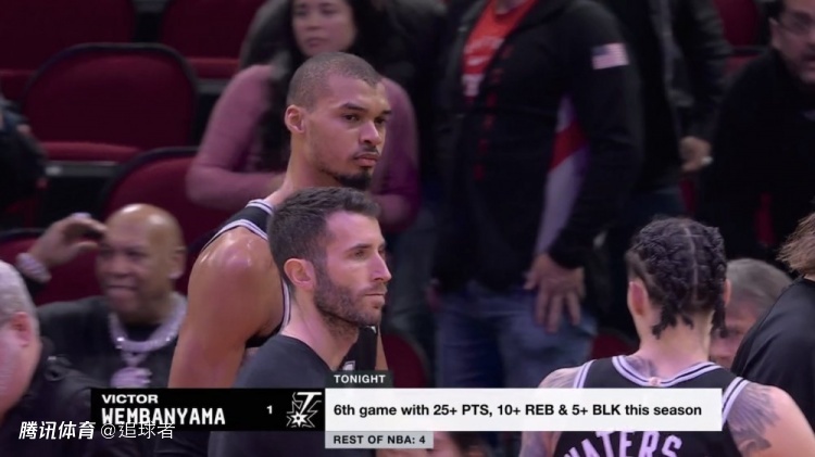 文班亚马本赛季第6次单场至少25+10+5帽,排在联盟第一位,而联盟其他球员合计4次做到;马刺逆转复仇火箭,此役过后马刺战绩来到32胜15负,稳住西部第二,火箭战绩来到28胜17负,仅领先第五的湖人0.5胜场。