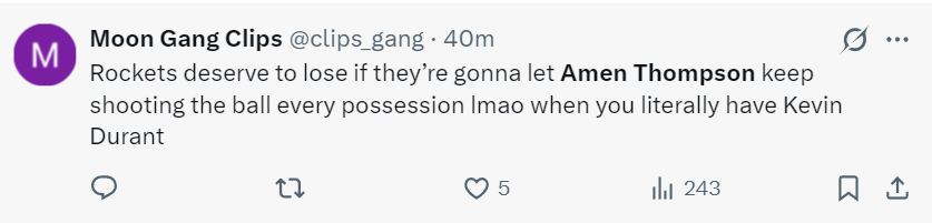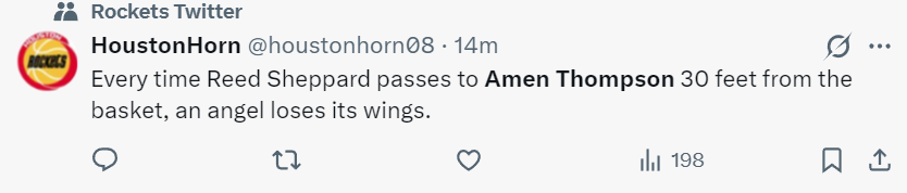 休媒:每当谢泼德将球传给阿门时(此时阿门面前四米没人)当然他也不会投进。