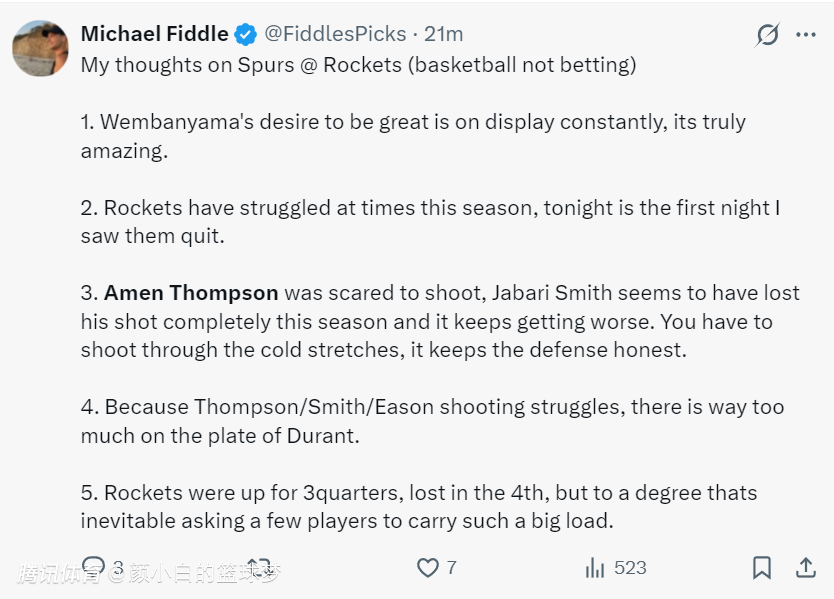 赛后休媒纷纷炮轰阿门:马刺队彻底暴露了阿门的投篮能力不足的问题,当然火箭队的进攻表现也相当糟糕。