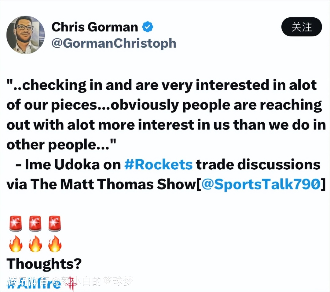 乌度卡还谈到近期跟火箭队讨论交易的球队非常多,这些球队主动联系了我们,他们对我们队内多位球员都很感兴趣,这远远超出了我们的预期。
