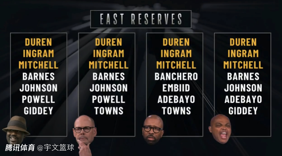 四大名嘴奥尼尔、厄尼-约翰逊、肯尼-史密斯和巴克利,在最新的电视节目《NBA TODAY》中预测26年全明星替补阵容,其中有七人获得四人的一致肯定被看好入选,詹姆斯获得两人支持,巴克利力挺狄龙入选,快船无人上榜。