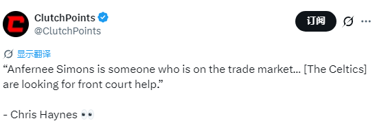 北京时间1月30日,名记Chris Haynes在直播节目中表示,安芬尼-西蒙斯已进入交易市场,凯尔特人正寻求内线补强。
