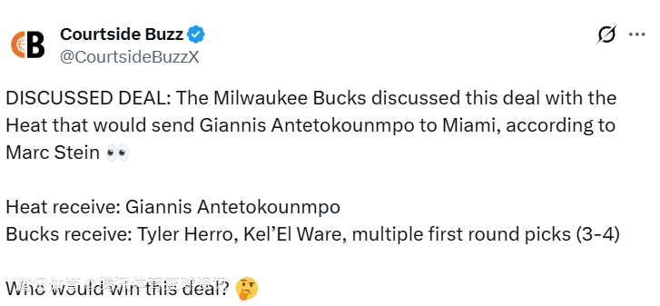 北京时间1月30日,据名记Marc Stein报道,雄鹿已与热火就一笔交易展开商谈,该交易或将字母哥送至热火。