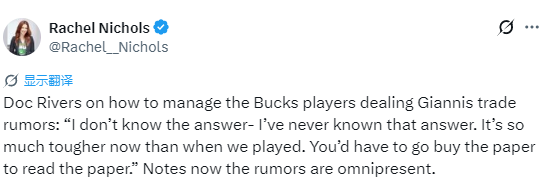 里弗斯表示:“我也没有答案,我一直都想不出办法。现在的情况比我们打球那会儿难太多了,以前想了解消息还得专门买份报纸看。” 他还指出,如今的交易流言无处不在。