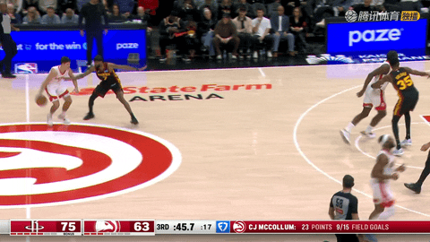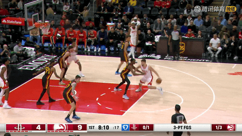 易边再战还剩11分22秒时,基斯珀特接克雷伊奇助攻命中三分,老鹰将比分反超为45:43。第三节还剩10分42秒时,小史密斯接杜兰特分球回敬一记三分,火箭再度反超。
