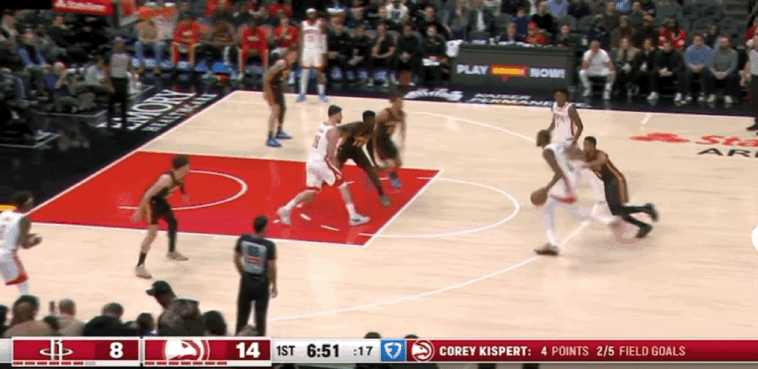 杜兰特引领火箭多点开花逐步追分,同时他持续突破展示自己多元化的进攻表现,突破滑翔暴扣得手,随后带来招牌的急停跳投。火箭逐步找回攻防压制力,让老鹰在本节最后3分10秒一分不得,通过阿门和霍勒迪连得5分,双方在首节战平。