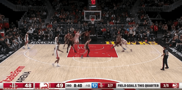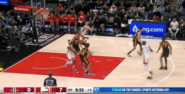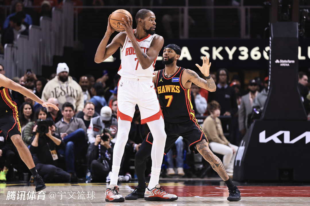 火箭客场背靠背出战,球队此前在与马刺的三番对决中惨遭下半场崩盘,最终不敌对手,杜兰特在末节发挥不佳,这场比赛他势必调整好自己状态,率队避免连败。首节比赛,火箭被老鹰打出7-0的开局,杜兰特跳投命中取得个人首次运动战进球,为火箭及时止损。