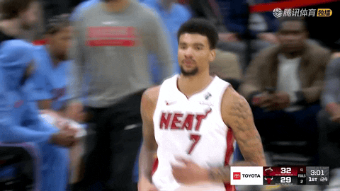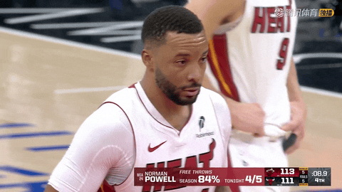 比赛开始还剩11分43秒时,热火由阿德巴约在外线接到鲍威尔助攻,三分投篮命中,打破场上僵局。