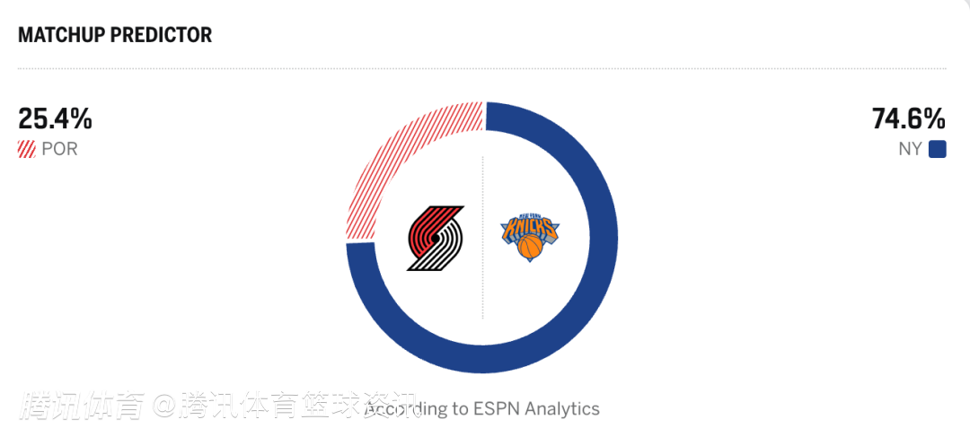 开拓者25.4%,尼克斯74.6%