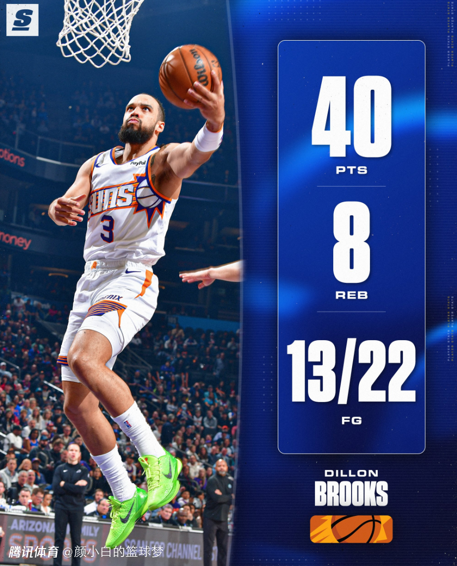 北京时间1月30日,太阳主场114-96大胜活塞拿到二连胜。这场胜利对于凤凰城来说是一场巨大的胜利,活塞是东部第一+联盟第二,而太阳只是西部第七,最关键的是这支太阳没有布克、格林,缺少了两个核心还能将东部第一按在地板上摩擦,新领袖狄龙-布鲁克斯就是第一功臣。