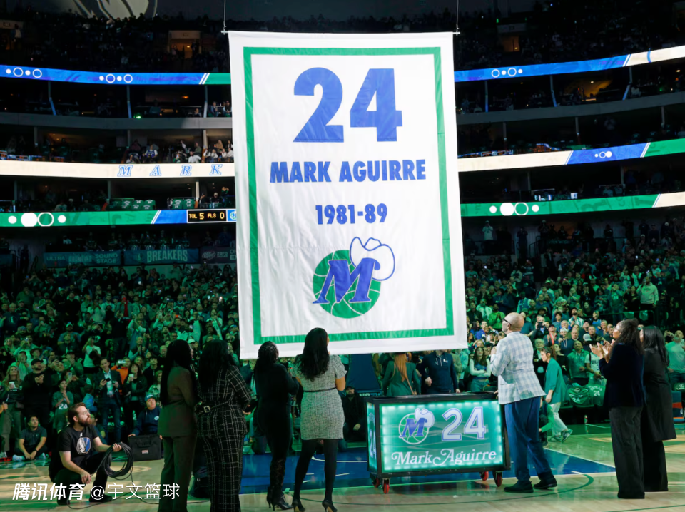 独行侠在主场与黄蜂比赛中场休息间隙,退役了球队前朝元老马克-阿奎尔的24号球衣。