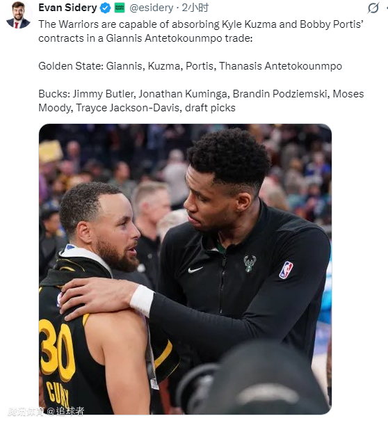 美记Evan Sidery报道,在围绕字母哥的潜在交易讨论中,勇士在薪资层面具备同时吸收库兹马与波蒂斯合同的能力。在该交易框架设想中,勇士将得到字母哥、库兹马、波蒂斯以及萨纳西斯-阿德托昆博;雄鹿则得到吉米-巴特勒、乔纳森-库明加、波杰姆斯基、摩西-穆迪、特雷斯-杰克逊-戴维斯以及选秀权。