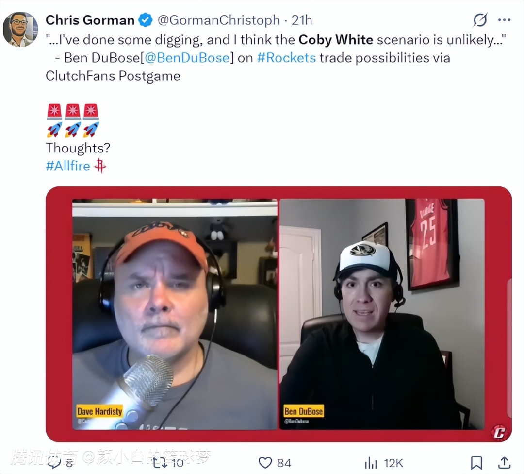 火箭队记本-杜博斯实际上在一天之前就知悉了公牛、火箭关于怀特的交易的探索,本-杜博斯在播客节目中明确表示:因为公牛提出的交易筹码火箭无法匹配,所以火箭交易得到怀特不太可能达成。