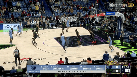 第1节还剩11分57秒时,杰克逊和奎因完成跳球,比赛开打。第1节还剩11分39秒时,杰克逊在考沃德助攻下突破打板勾手投篮命中,为灰熊先拔头筹。
