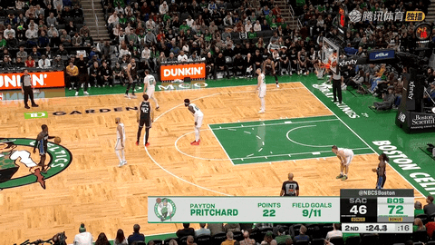 第一节还剩10分48秒至还剩3分49秒之间,凯尔特人后卫普里查德连续命中5次投篮,包含突破上篮、撤步跳投和三分球,将球队领先优势从3分扩大到12分,为主队开局定下基调。