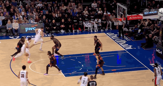 第三节结束前,布伦森送出助攻,布里奇斯压哨空接得分!