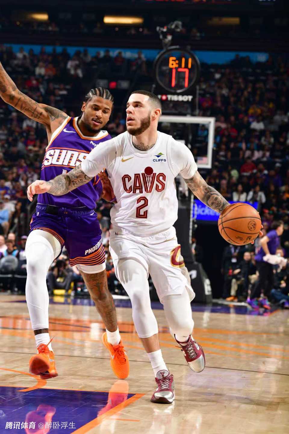 太阳过去两场连续主场战胜篮网与活塞收获2连胜,骑士过去5场豪取5连胜,本赛季首次交锋骑士主场129-113战胜太阳。本场太阳缺少布克,骑士缺少莫布利、加兰与斯特鲁斯。太阳迎来格林复出,首节双方持续紧咬比分拉锯战缠斗,狄龙延续状态持续冲击内线得分,双方交替领先缠斗,首节比赛结束太阳26-25领先骑士。