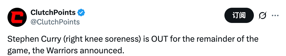 北京时间1月31日,NBA常规赛,勇士主场对阵活塞,库里因为右膝酸痛,本场比赛不会回归。
