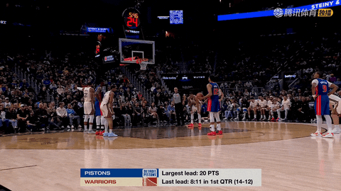 第一节还剩10分52秒时,活塞以4比8落后勇士,但从那之后到第一节结束前12秒,他们在约10分钟内打出41比26的攻击波,将比分反超到45比34结束首节,为最终胜利奠定了基调。