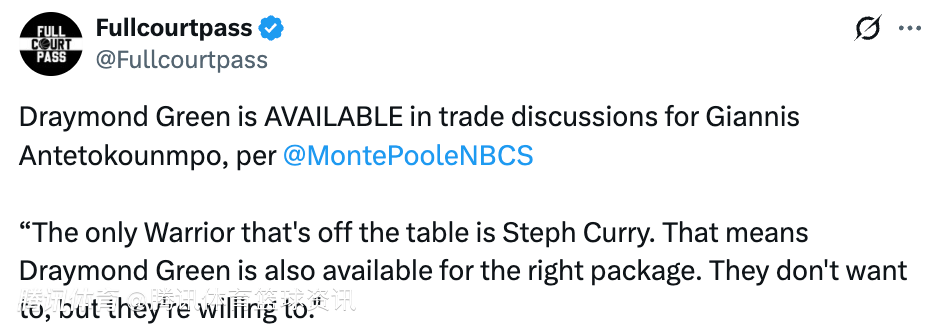 北京时间1月31日,据勇士队记Monte Poole报道,追梦已被纳入交易字母哥的谈判讨论中。