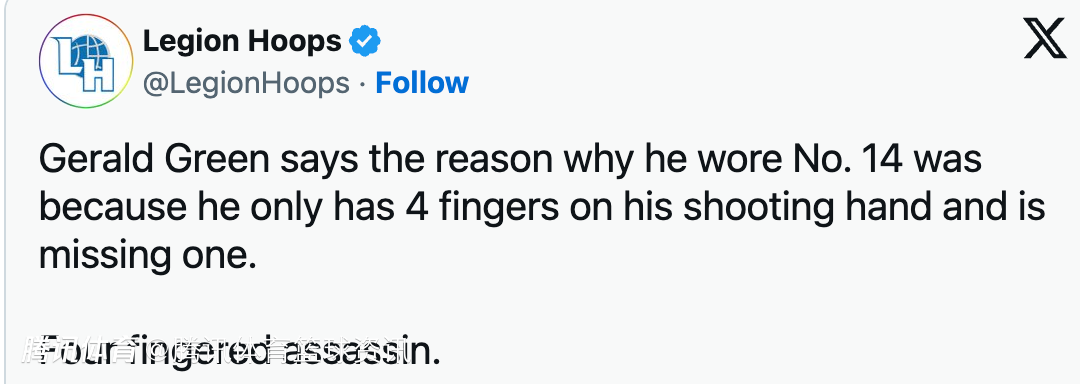 北京时间1月31日,近期,前NBA球员杰拉德-格林在与美国知名网红Neon的直播连线中透露了自己选择14号球衣的原因。